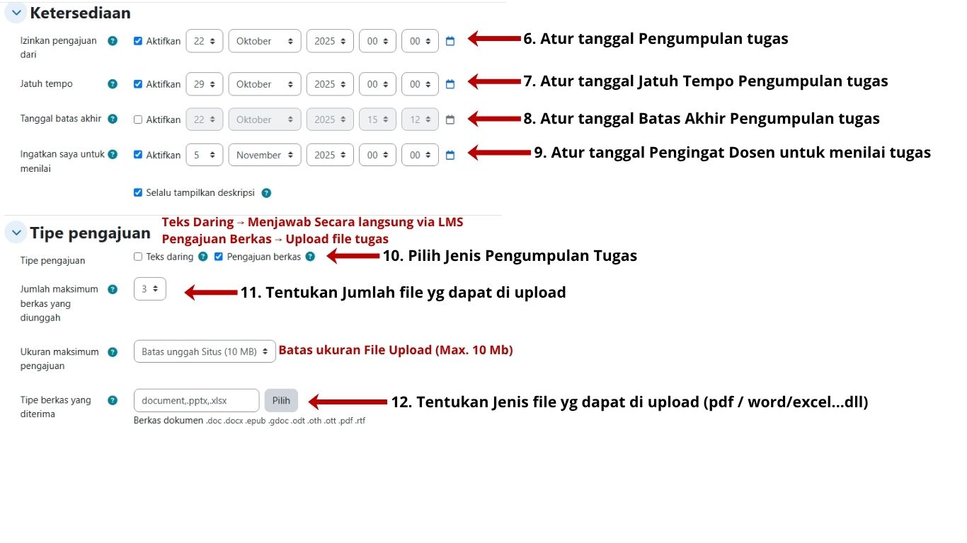 - Atur Ketersediaan (Availability) → tanggal mulai, Jatuh Tempo dan Batas Akhir.