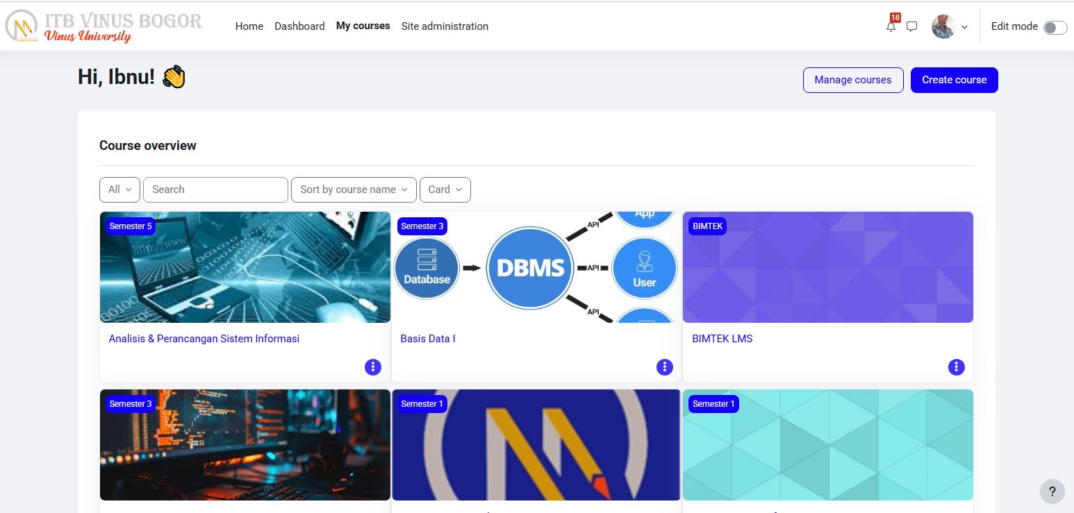 Ikuti langkah-langkah berikut untuk mengelola mata kuliah: