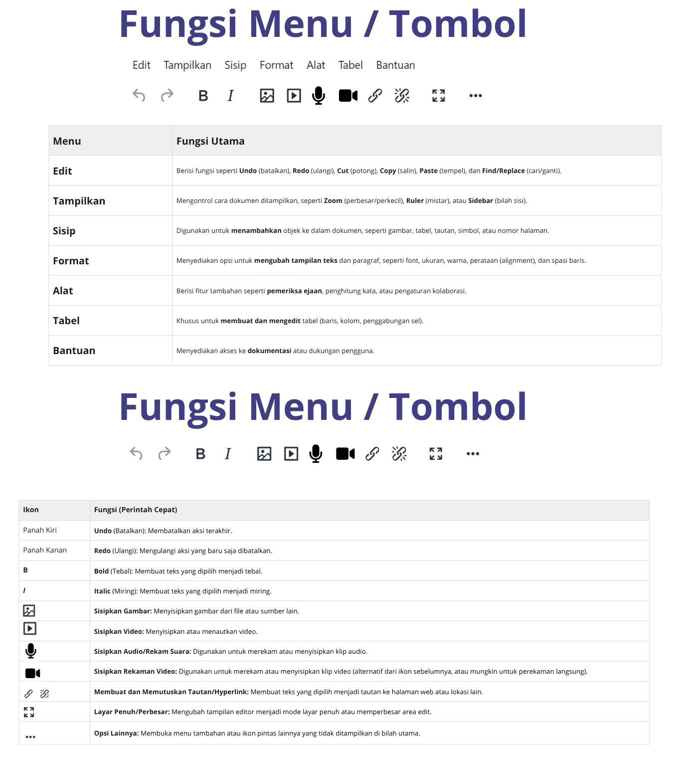 Fungsi Menu dan Icon