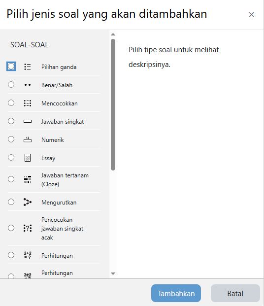 Jenis-jenis Soal yang dapat dipilih