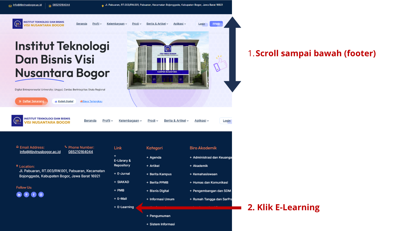Lokasi Menu E-Learning (Footer)